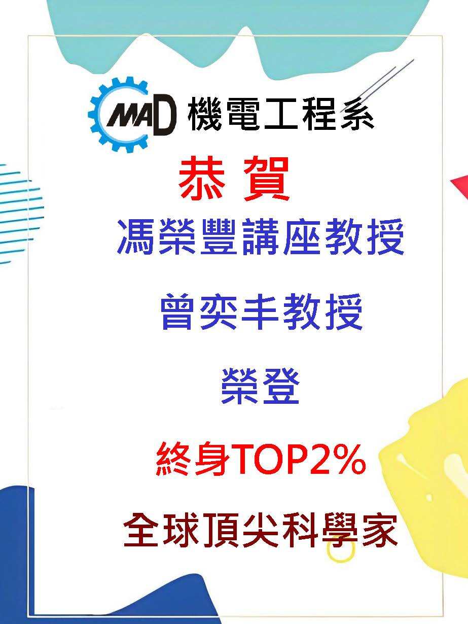 恭賀! 本系教師馮榮豐講座教授、曾奕丰教授榮登終身TOP2%全球頂尖科學家